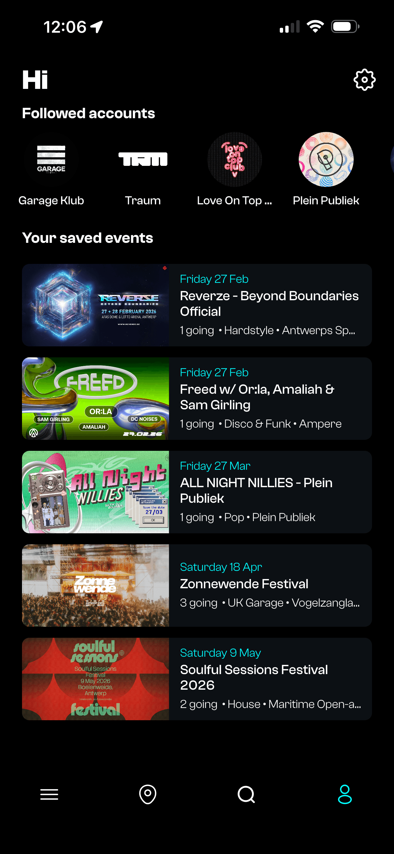 Follow your favorite night clubs and save events to stay up to date!